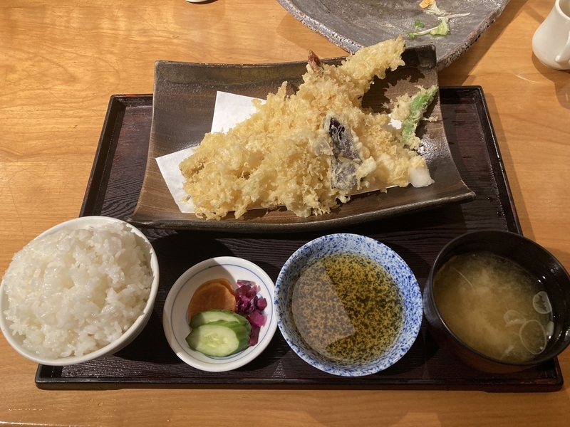 帰りに小田原に寄って夕飯も食べました。私は天ぷら定食。