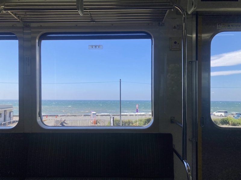 海を見ながら江ノ電に揺られ、鎌倉へと向かう。七里ガ浜付近の景色がきれい。