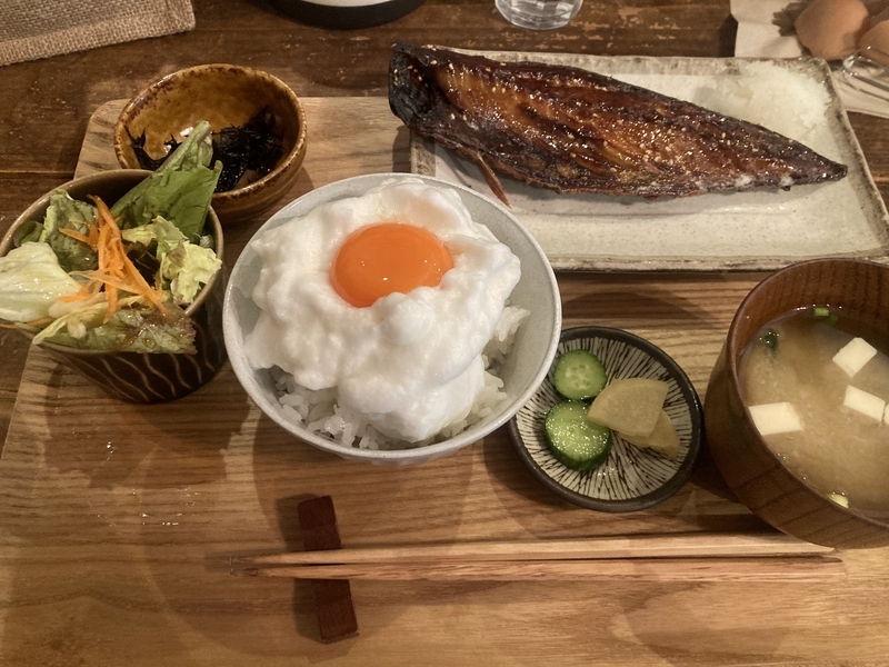 無事にふわふわのメレンゲ卵かけごはんが完成!甘醤油をかけて、美味しく頂いた。お魚はあじのみりん干しだった気がする。ボリューム満点でお腹いっぱい。こちらも大満足。全て美味しく完食。