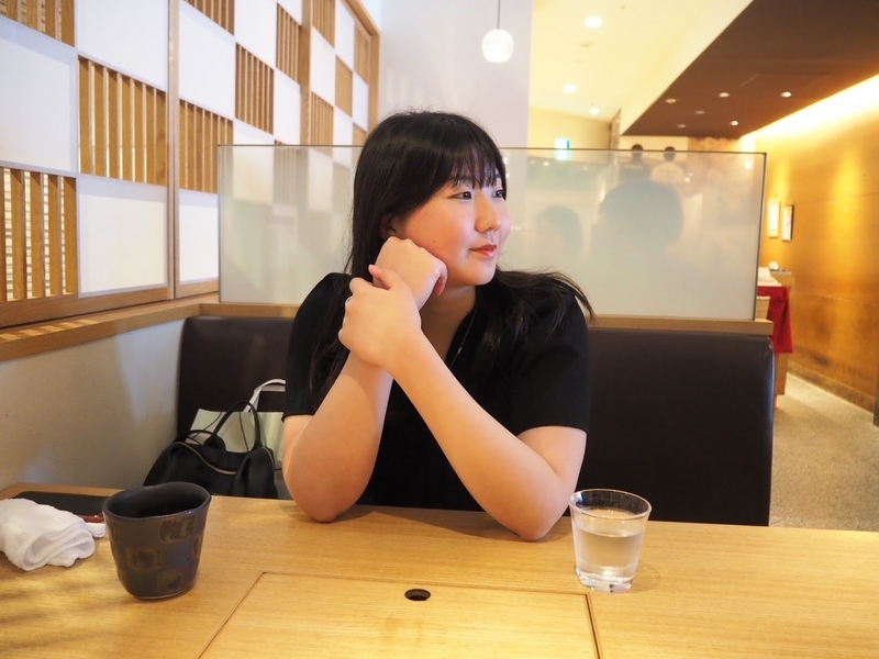 Aちゃんがカメラを買ったようで、早速撮ってくれた一枚。最近はちょっと明るめの赤リップが好み。暑さが和らいでくるとメイクも楽しくなる。この日は久々にマスカラもした。普段は必要最低限しかメイクしないので、たまに気合いが入る。