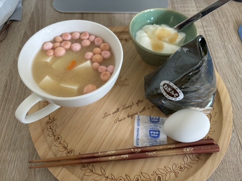 最初からそんなに頑張ると続かないから、今日は隣駅まで往復25分くらい歩いた。途中で早朝から営業しているおにぎり屋さんに寄って、朝ごはんを無事調達。